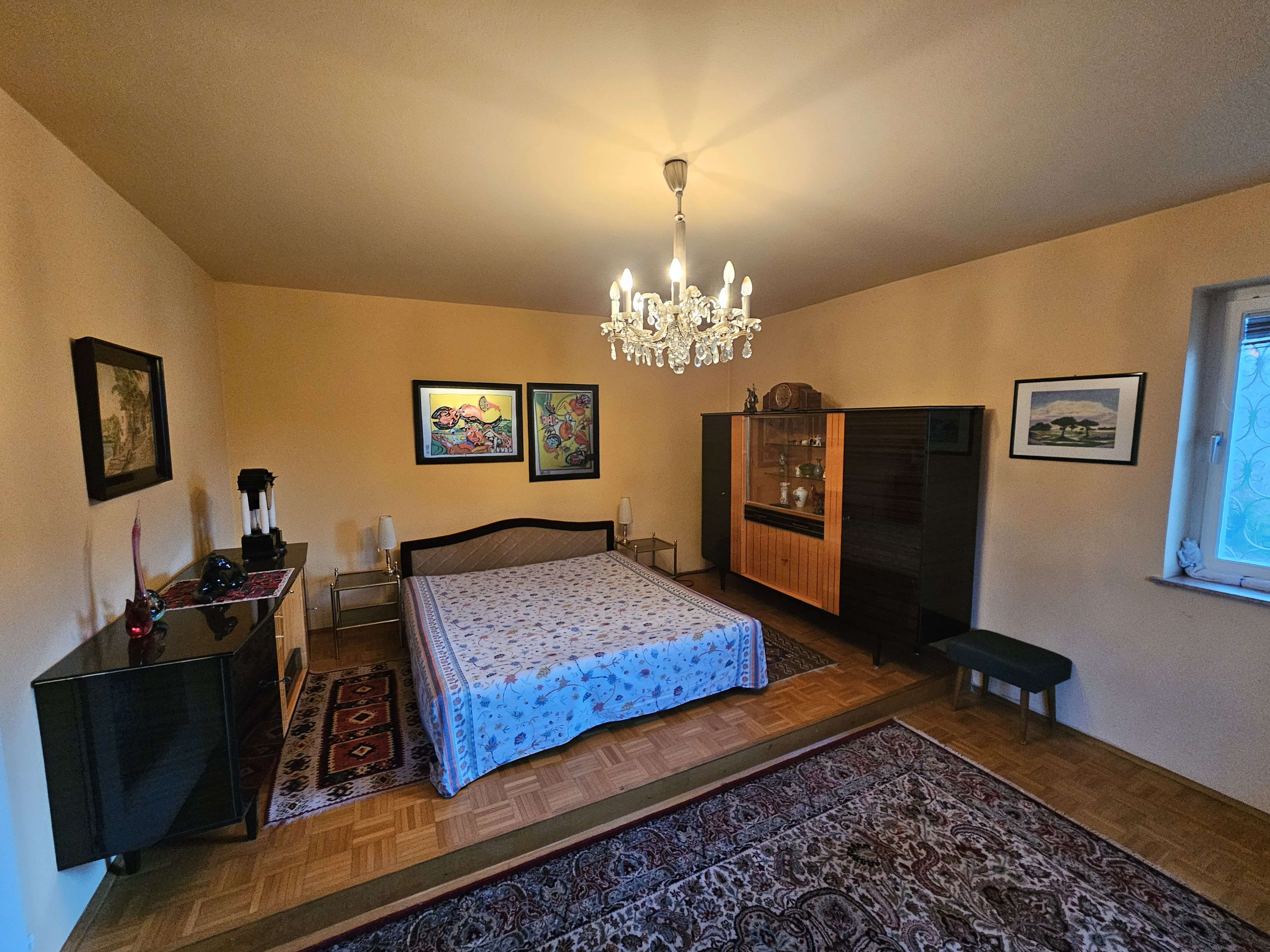 Im Untergeschoss befinden sich ein großer Vorraum, ein weiteres Schlafzimmer, ein Gäste-Schlafzimmer und eine Dusche und ein WC sowie ein vielseitig nutzbares Zimmer. Diese Räume eignen sich hervorragend als Arbeits-, Gäste- oder Hobbyraum und erweitern das Nutzungspotenzial des Hauses erheblich.