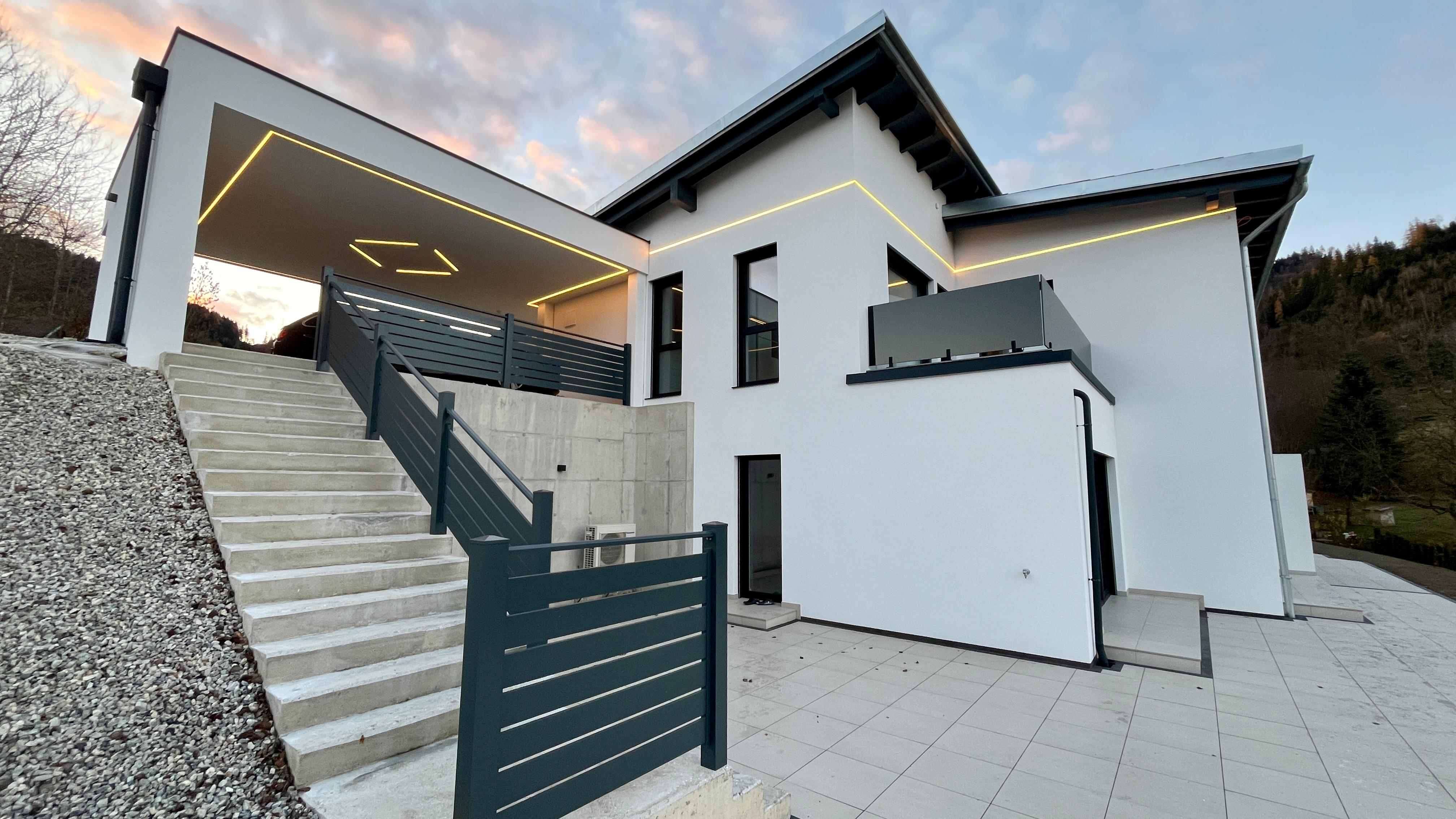 Dieses neuwertige, exklusive Doppelhaushälfte in massiver Beton- und Ziegelbauweise befindet sich in ruhiger und attraktiver Lage von Kapfenberg-Parschlug und überzeugt mit ca. 178 m² Wohnfläche auf einem 632 m² großen Grundstück durch modernen Wohnkomfort auf höchstem Niveau.